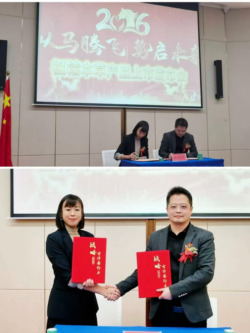 2月9日下午,青岛祖康辕本草生物科技有限公司于青岛市药食同源中药发酵技术创新中心,青岛康迈臣生物科研有限责任公司一楼会议室,成功举办“四季康迈臣,本草祖康辕,十二精灵护安康”新产品上市暨品牌战略合作签约仪式。山东省及青岛市大健康产业相关单位领导、行业嘉宾及媒体代表等50余人齐聚一堂,共同见证这一融合科技创新与文化传承的健康盛宴。